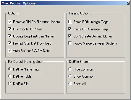 - Internal default : clrmamepro utilisera les settings internes à clrmamepro.