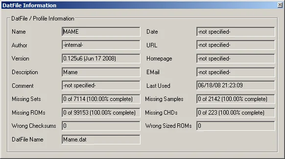 - Datfile file : Rompath portera le nom du fichier .dat.