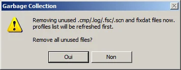 - Garbage collection : Efface les fichiers .cmp, .log, .fsc (fastscan) et .scn (scan) non-utilisés. Si vous effacez manuellement un fichier .dat, certains fichiers peuvent devenir inutiles.