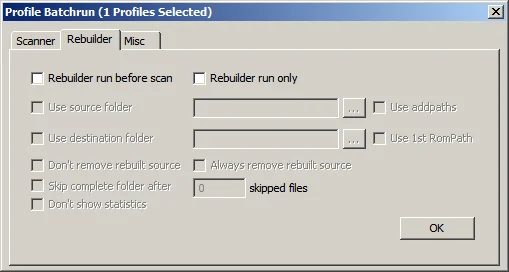 - Use source folder : Choisir un dossier source précis (pour tous les profils chargés). Si vous ne cochez pas cette option, clrmamepro utilisera le dernier dossier mémorisé dans le Rebuilder de chaque profil. Dans le cas où aucun dossier n'est mémorisé et si vous ne cochez pas cette option, aucune action ne sera effectuée.
